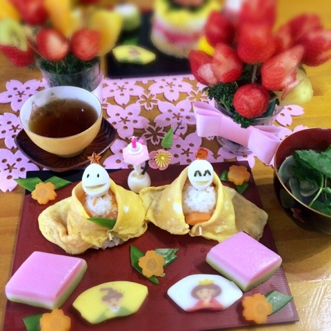 うずら卵をお顔に見立てて、薄焼き卵を着物に見立て・・・・